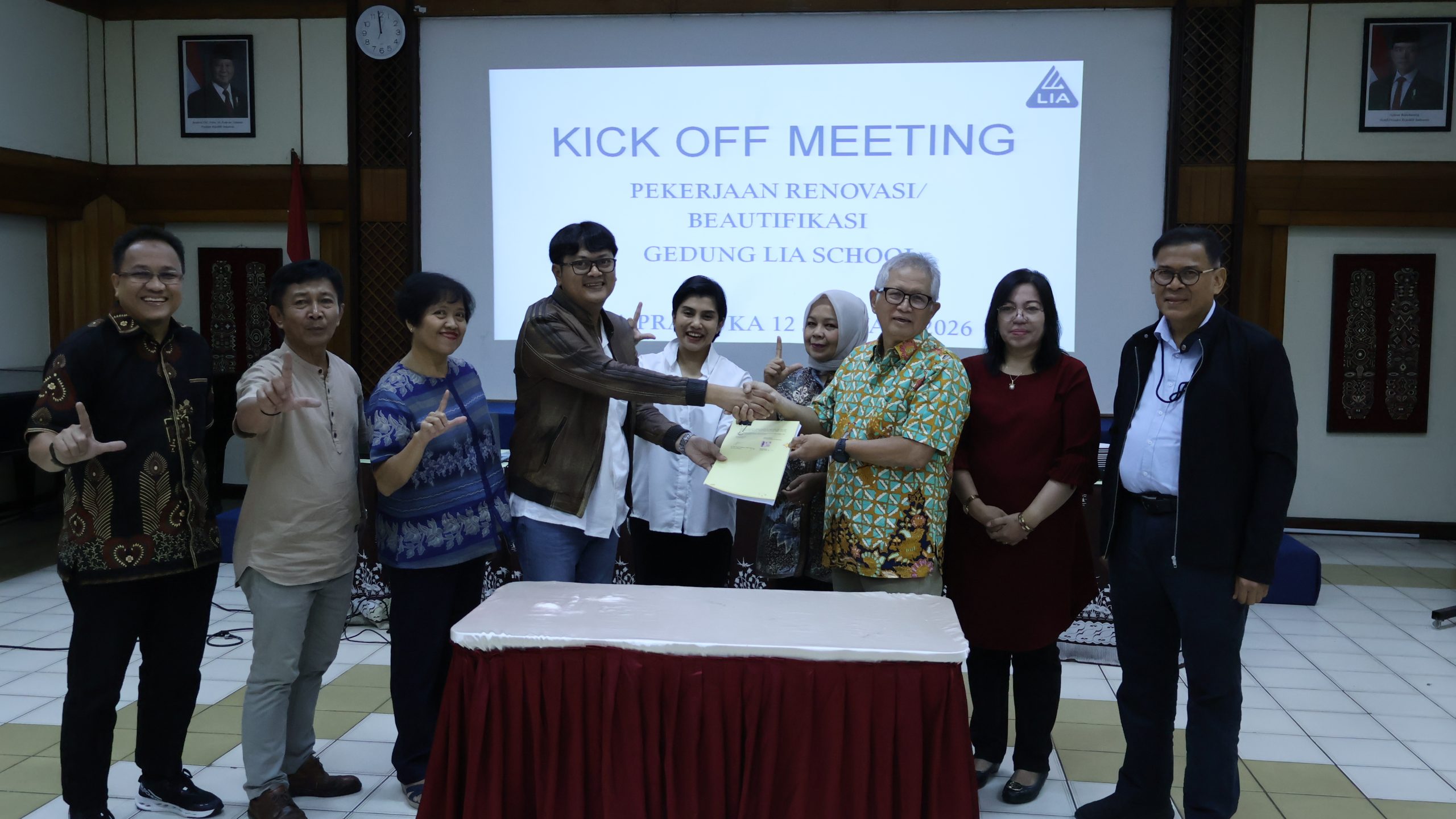 YAYASAN LIA secara resmi memulai pekerjaan renovasi dan beautifikasi Gedung LB LIA Pramuka yang akan digunakan sebagai SMA LIA, ditandai dengan pelaksanaan Kick Off Meeting dan acara syukuran pada Senin, 12 Januari 2026, bertempat di Auditorium LB LIA Pramuka. Kegiatan ini menjadi momentum penting sebagai langkah awal transformasi Gedung LIA Pramuka agar siap mendukung proses pembelajaran jenjang Sekolah Menengah Atas (SMA) LIA dengan lingkungan yang lebih modern, nyaman, dan representatif.